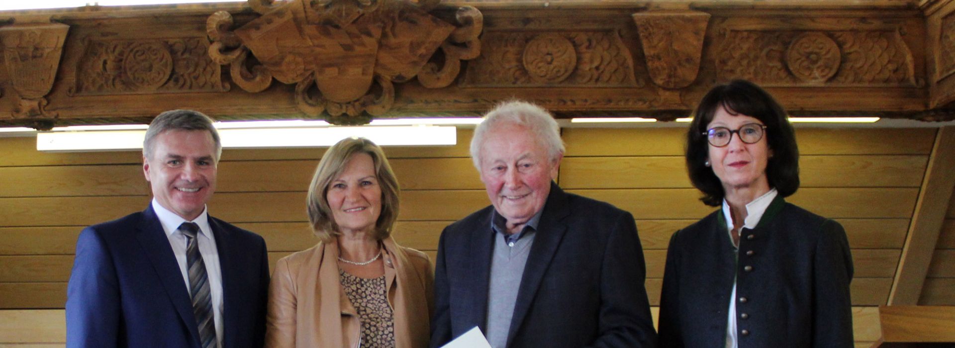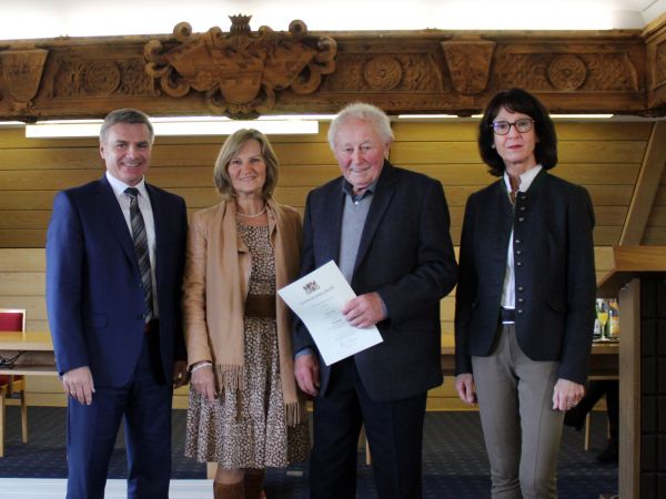 Landrat Peter Dreier und die Leiterin des Amtes für Digitalisierung, Breitband und Vermessung, Ruth Jakob begrüßten Feldgeschworene aus Adlkofen, Altfraunhofen, Altdorf, Pfeffenhausen und Vilsbiburg, begleitet von den jeweiligen Bürgermeistern bzw. Vertretern der Heimatgemeinden, im Kleinen Sitzungssaal.