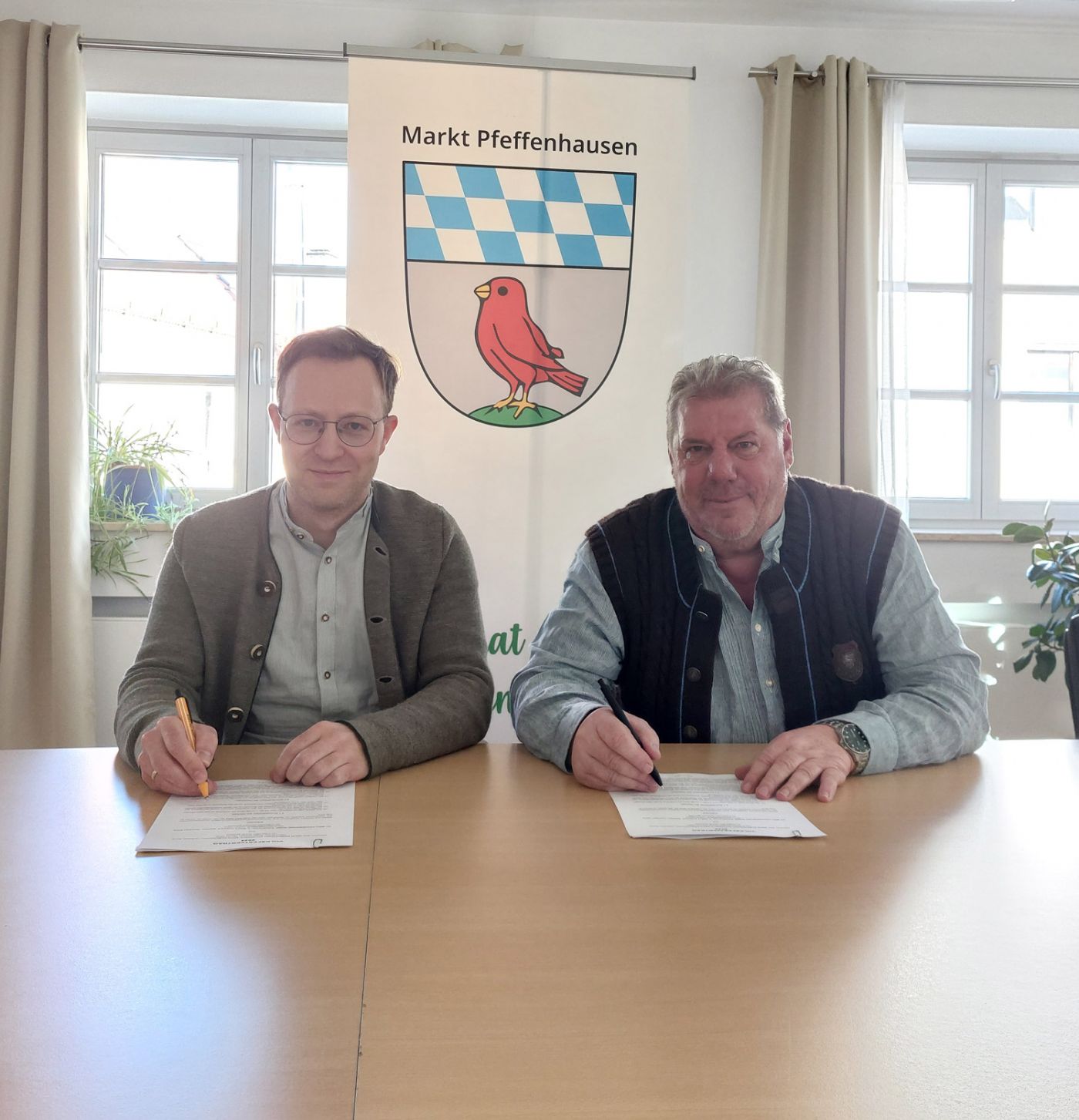Das Pfeffenhausener Volksfest 2024 ist gesichert. Nachdem Andreas Simmel, Festwirt des letztjährigen Pfingstvolksfestes, aufgrund der hohen Aufwendungen für eine Wiederauflage des Festes nicht mehr zur Verfügung stand, haben Marktverwaltung und Marktgemeinderat alle Hebel in Bewegung gesetzt, um auch dieses Jahr wieder zu unbeschwerten Festtagen einladen zu können. Sondierungen ergaben, dass sich leider für ein Volksfest rundum die Pfingsttage kein Festwirt finden lässt. Umso erfreulicher sei es, sagt Bürgermeister Florian Hölzl, nun für den Alternativzeitraum vom 13. bis 16. Juni mit dem Festzeltbetrieb Mörz aus Amberg im Allgäu einen renommierten Festwirt gefunden zu haben. Am Montag war es soweit, dass beide Parteien den Volksfestvertrag unterschreiben konnten. Der Festzeltbetrieb Mörz besteht seit 1969 und wird seither von der Familie Mörz mit viel Fleiß und Engagement geführt. Geführt wird das Unternehmen von Jochen Mörz, der dabei von seinen Kindern Nadine, die für das Rahmenprogramm der Feste verantwortlich zeichnet, und Koch Andreas tatkräftig unterstützt wird. Jochen Mörz, bekannt auch als früher Eishockeynationalspieler, hat den väterlichen Betrieb zu stattlicher Größe ausgebaut und betont, dass ihm vor allem zwei Dinge wichtig seien: Nämlich die Qualität der Speisen und Produkte sowie die Zufriedenheit der Kunden. Der Festzeltbetrieb Mörz, der unter anderem schon Volks- und Oktoberfeste auf Mallorca und in Frankreich ausrichtete, ist derzeit mit den vier Zelten zum Beispiel auf den Volksfesten in Salzburg, Plattling, Fürstenfeldbruck und Freising engagiert. Gefragt, warum man sich nun als bekannter Player ausgerechnet für Pfeffenhausen interessiert und entschieden hat, sagt Jochen Mörz: „Das Fest fügt sich gut in unseren Jahreskalender ein und wir sehen das Potenzial des Pfeffenhausener Volksfestes. Hinzukommt, dass wir uns in Niederbayern einfach wohl fühlen und den Menschenschlag mögen.“ Bürgermeister Florian Hölzl verlor anlässlich der Vertragsunterzeichnung nochmal lobende Worte für den ausscheidenden Festwirt Andreas Simmel und brachte zugleich seine Freude zum Ausdruck, gemeinsam mit dem Festzeltbetrieb Mörz nun eine echte Chance zu haben, an das letztjährige Volksfest anzuknüpfen: „Wir sind motiviert und werden nun gemeinsam mit dem neuen Festwirt ein tolles Rahmenprogramm auf die Beine stellen. Pfeffenhausen kann viel und wir wollen bei den Festtagen wieder zeigen, wie stark unser Zusammenhalt ist.“ Wenn auch das Programm noch in Ausarbeitung ist, stehen doch einige Eckpunkte schon fest: Das Fest wird, weil der Pfingstmontag als Feiertag fehlt, wie schon vor der Corona-Zeit wieder am Donnerstag mit dem Standkonzert am Maibaumplatz und dem Auszug ins Festzelt beginnen. Für den Eröffnungsabend konnte die Festwirtsfamilie Mörz bereits die bekannte und beliebte Band „zruck zu Dir“ unter Vertrag nehmen, so dass einem stimmungsvollen Auftakt nichts im Wege stehen dürfte. Für Freitagabend plant man mit einer großen Fußballnacht. Im Zelt soll ab 21 Uhr auf der Riesenleinwand der örtlichen Kolpingsfamilie das Eröffnungsspiel der Fußballeuropameisterschaft zwischen Deutschland und Schottland übertragen werden. Am Samstag findet wieder in Kombination der Familien- und Seniorennachmittag statt. Die Seniorinnen und Senioren können dabei ihre Gutscheine schon ab 11 Uhr zum Mittagstisch einlösen. Im Vergnügungspark werden vergünstigte Preise angeboten. Volksfeststimmung pur wird für Samstagabend im Zelt versprochen. Nicht verzichten müssen die Pfeffenhausener auch auf ihren Flohmarkt. Dieser soll am Sonntagvormittag Besucher aus Nah und Fern nach Pfeffenhausen ziehen. Ob das Volksfest bis Montag, 17. Juni, verlängert wird, bleibt den weiteren Planungen vorbehalten. „Jetzt werden wir uns alle kräftig ins Zeug legen, dass die 2024er Auflage des Pfeffenhausener Volksfestes ein Erfolg wird“, krempelt Jochen Mörz die Ärmel hoch.