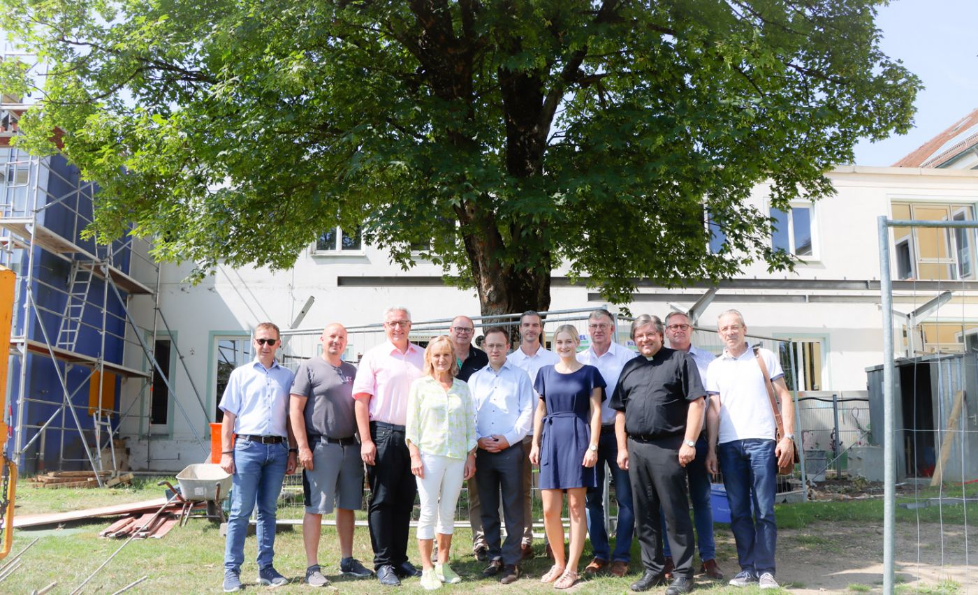 Die Sanierung des Nardinikindergartens am Gaisberg hat begonnen. Schon im September 2023 befasste sich der Marktgemeinderat mit der Generalsanierung. Das Gremium billigte die seitens des beauftragten Architekturbüros Wacker aus Nandlstadt und der Verwaltung vorgeschlagenen Sanierungspläne einstimmig. Teil des Generalsanierungsprogramms sind im Einzelnen der Bau eines neuen Treppenhauses mit Aufzug, Behinderten-WC und Personalgarderobe, die Einverleibung der früheren Bücherei im ersten Obergeschoss in den Kindergarten, eine umfangreiche energetische Sanierung von Dach und Fassade, Erneuerungs- und Ausbesserungsarbeiten im Inneren, eine Anpassung der Freiflächengestaltung und nicht zuletzt eine weitreichende Sanierung in den Gewerken Heizung, Lüftung, Sanitär und Elektrik. Während der Bauzeit besteht dank der Unterstützung der Pfarrei Pfeffenhausen die Möglichkeit, die drei Kindergartengruppen im Erdgeschoss des Pfarrheims übergangsweise unterzubringen. Die aktuelle Kostenberechnung des Büros Wacker beläuft sich auf knapp 2,3 Millionen Euro, wobei rund 50 Prozent der tatsächlich anfallenden Kosten durch den Freistaat Bayern getragen werden. Mitte Mai erhielt der Markt Pfeffenhausen die Zustimmung zum vorzeigten Maßnahmenbeginn für die geförderte Baumaßnahme von der Regierung von Niederbayern. Der Markt Pfeffenhausen ist Erbbaurechtsnehmer des Gebäudes, das auf Grund der Pfarrkirchenstiftung Pfeffenhausen steht. Im Rahmen des Förderverfahrens war der Markt Pfeffenhausen gehalten, sich auch mit einem alternativen Neubau auseinanderzusetzen, der sich aber mangels Erreichens der dafür maßgeblichen Sanierungsschwelle, die bei 80 Prozent der Neubaukosten liegt, als nicht förderwürdig und von daher als nicht weiter zu verfolgen herausstellte. Bisher hat der Marktgemeinderat 8 Gewerke mit einer Auftragssumme von rund 1.151.000 € vergeben. Die Baumeisterarbeiten gingen dabei an die Firma Georg Huber aus Nandlstadt. Auch örtliche Firmen konnten sich im Rahmen der öffentlichen Ausschreibung behaupten. Die Firma Dürmeyer aus Pfeffenhausen hat zum Beispiel den Zuschlag für die Arbeiten an der Elektroinstallation bekommen, während die Firma Pichlmeier aus Pfeffenhausen die Dachdeckerarbeiten verantwortet. Die Generalsanierung des Gebäudes stand schon seit Jahren auf der Agenda, wurde aber infolge des Neubaus der Pfeffenhausener Bachspatzen nochmal zeitlich verschoben. Träger des Kindergartens wie auch der benachbarten Kinderkrippe ist bekanntlich seit September letzten Jahres der Markt Pfeffenhausen selbst.